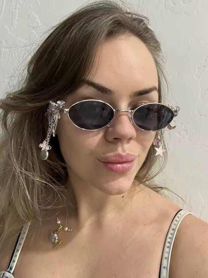 Gorgeous, I'll order with transparent ones too. Glasses attract our attention. The oval shape is the perfect length for my face and doesn’t feel too narrow. The pink lenses arent fully see-through but still clear enough to wear indoors,the rhinestone charms on the side are honestly the best part tthey move slightly and catch the light, very Y2K fairyclub vibe, wore them to brunch and got compliments 🥰🤭🤭