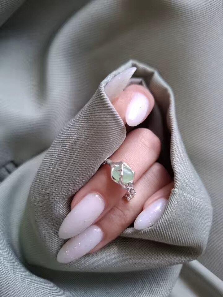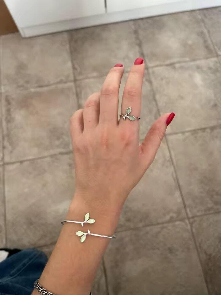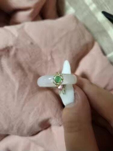 it’s even cuter in person, the gold detail with the green accent pops perfectly. Very smooth on the finger and easy to style. 🤍💍