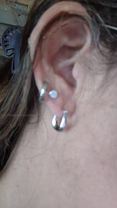 Just got these today and I already know I’ll wear them nonstop 🥳🥳 the size isperfect, not too small,not oversized, very balannced on the ear. They re lightweiight so they don’t pull at all, even after hours. The silver tone looks super clean and shiny without being too much. They go so well with both casual outfits and dressedup looks . Such an easy everyday pair ✨🤍
