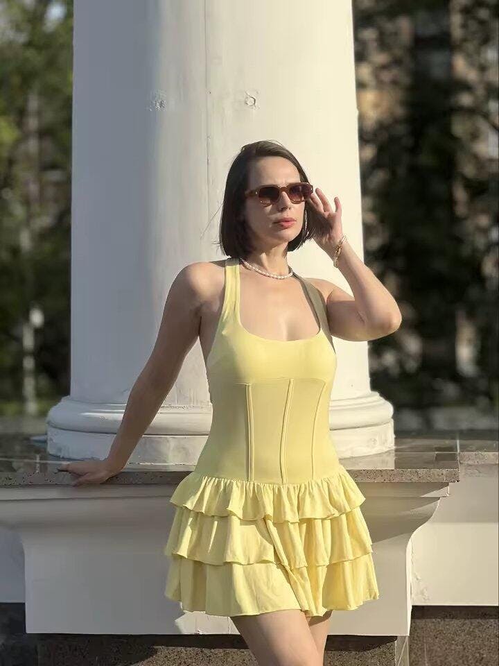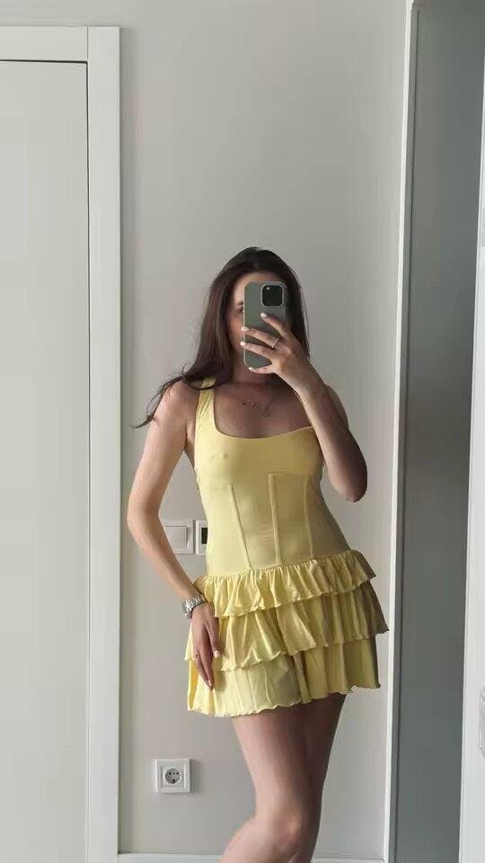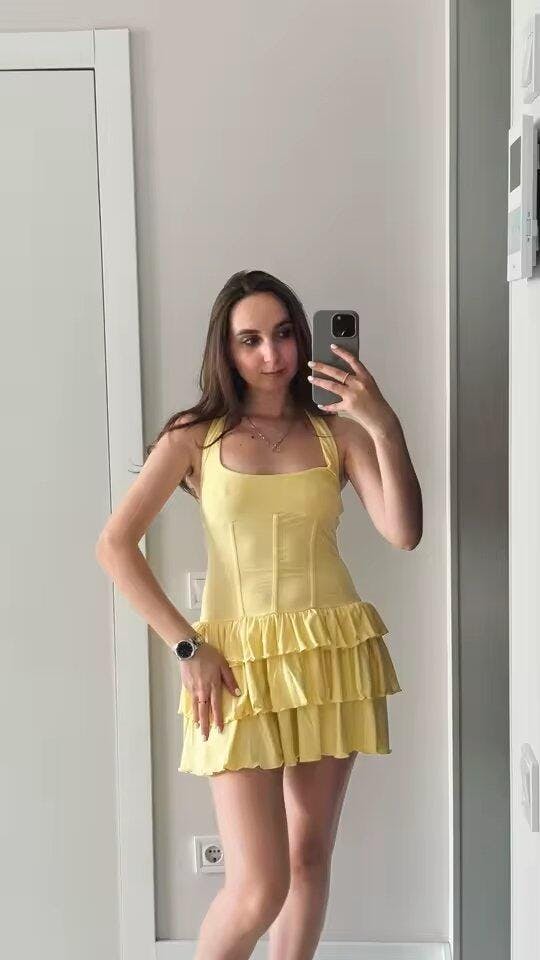 This dress looks straight out of a romantic movie scene 🤍 The asymmetric ruffles give so much movement and make the silhouette really interesting. The fabric feels light and airy, perfect for warm weather. I love how the neckline is soft but still flattering. It feels feminine without trying too hard