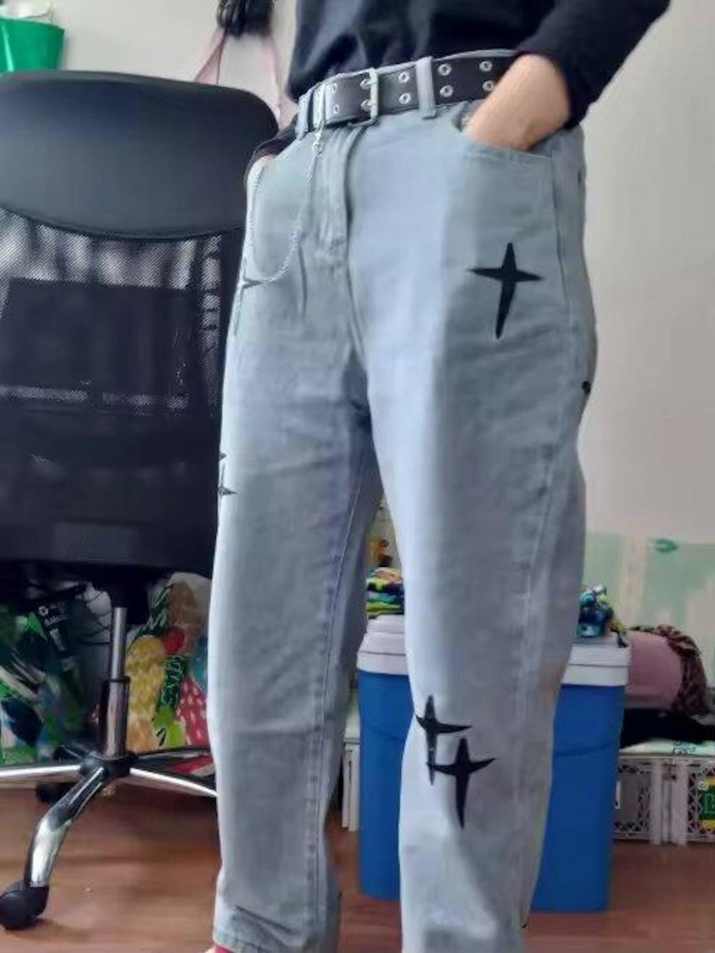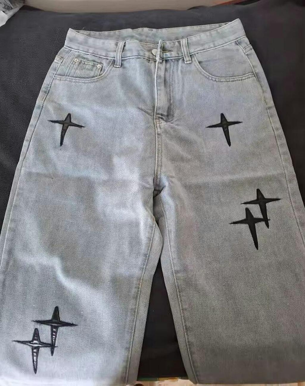 Straight Leg Cross Print Jeans