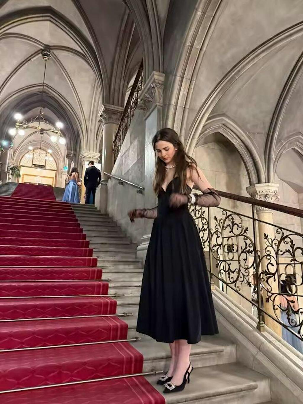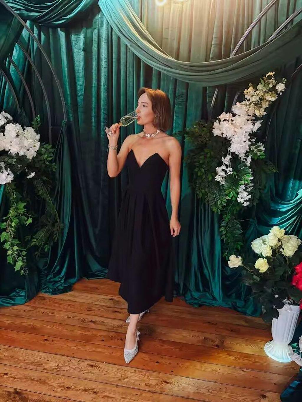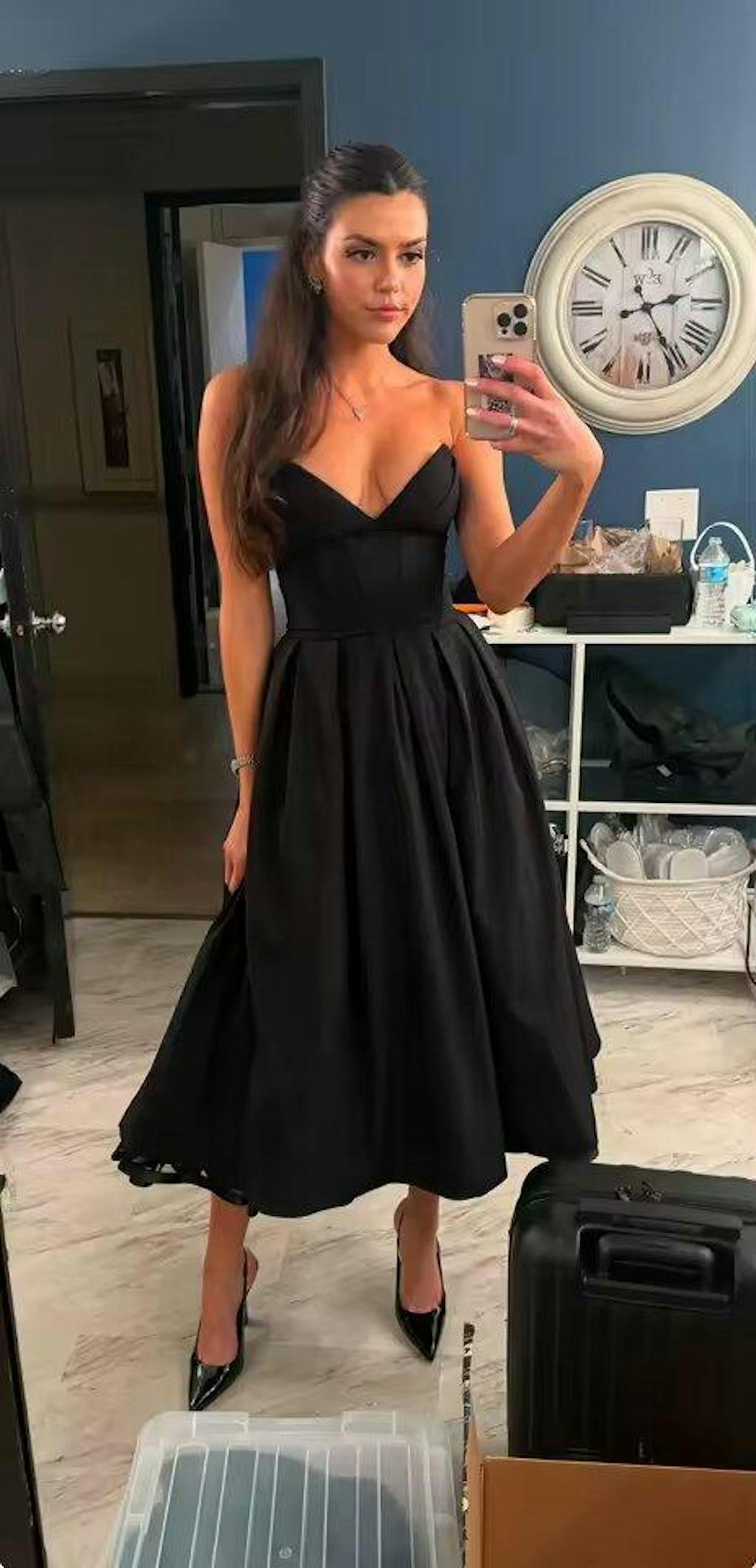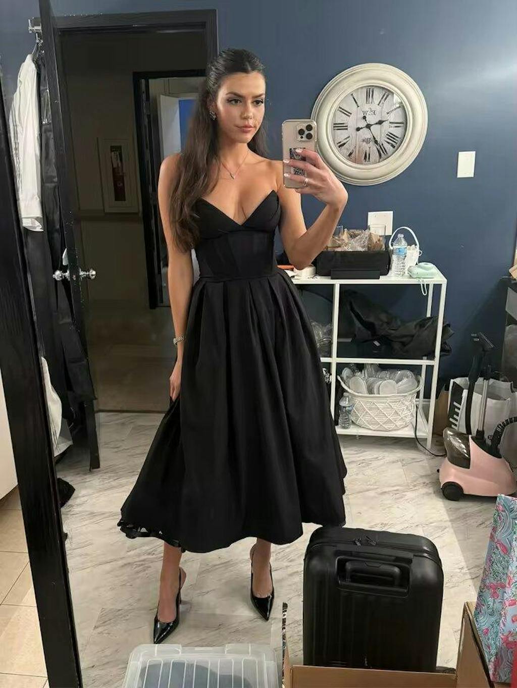 Black Plunge Corset Midi Dress