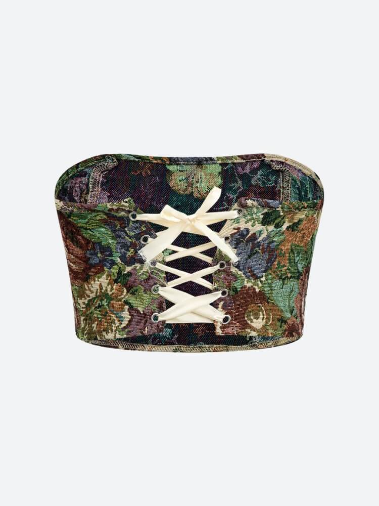 Floral Tapestry Bustier & Pants Two Piece Set