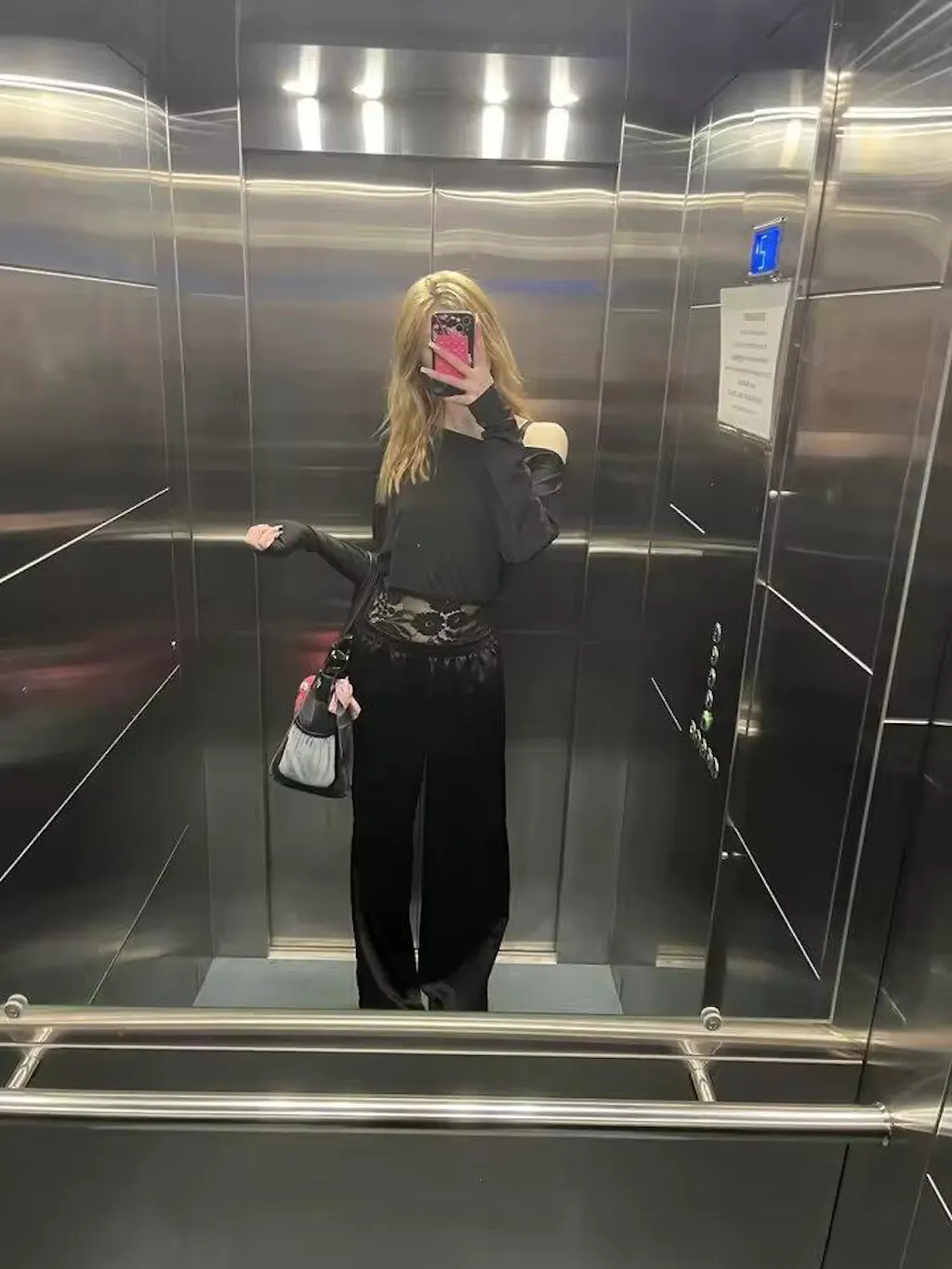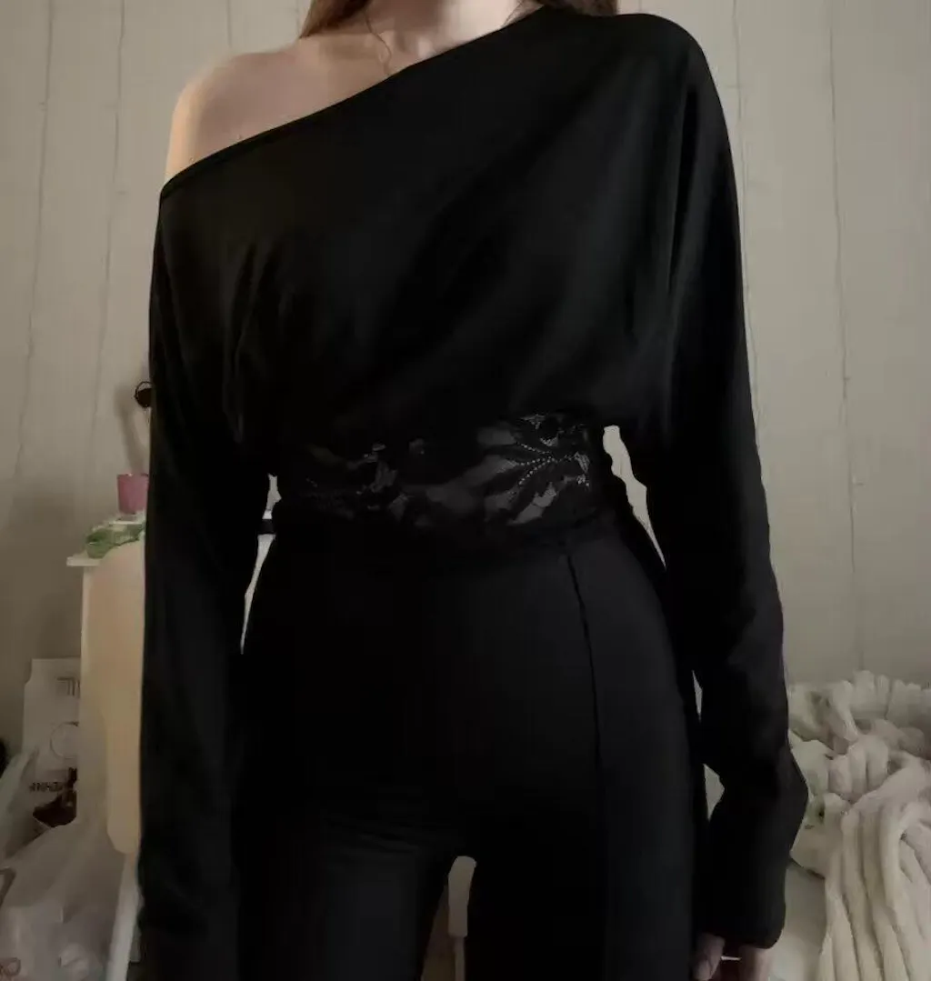 レースウエストワンショルダートップ