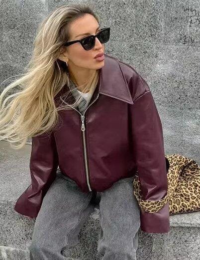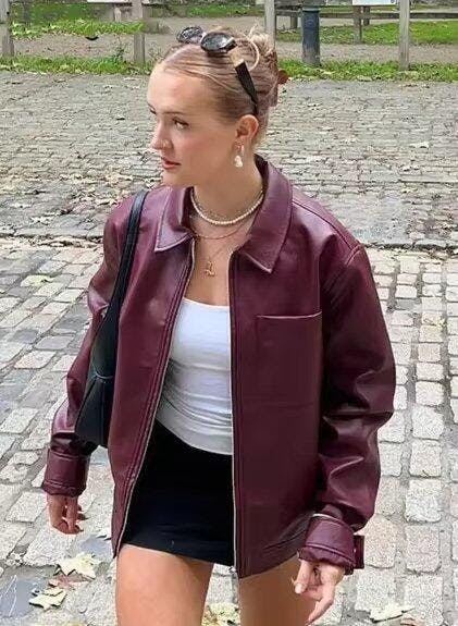 Faux Leather Burgundy Jacket