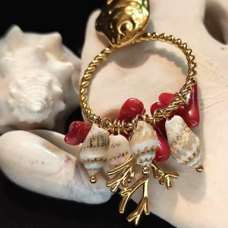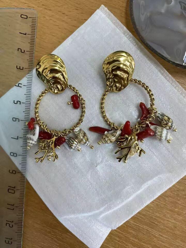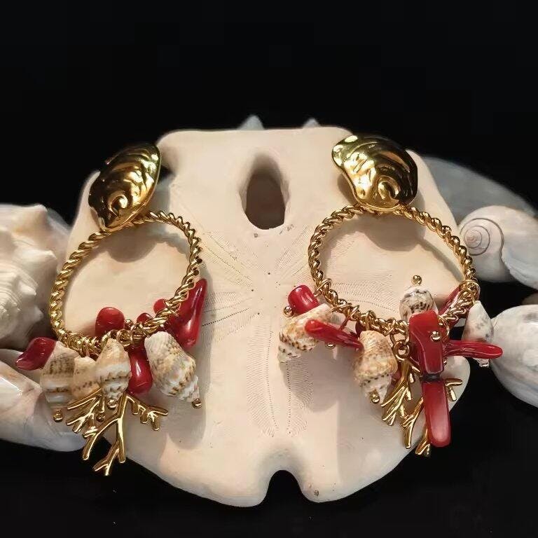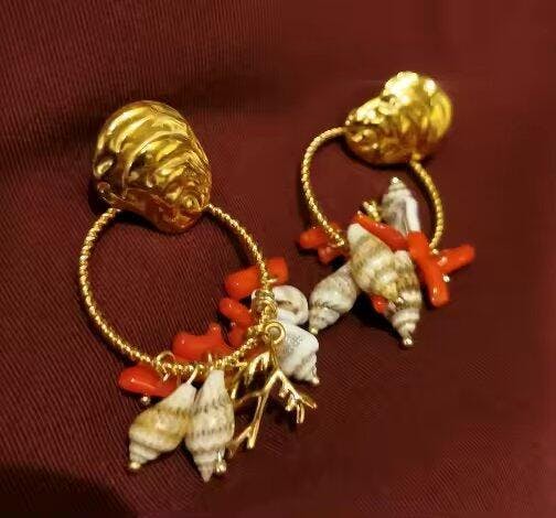 Seashell Beaded Hoop Earrings